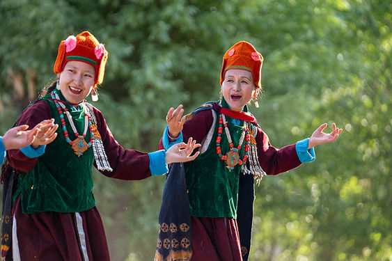 The monks' sacred masked dance, known as the Cham dance, is the highlight of the Hemis Festival. Dressed in elaborate costumes and fearsome masks, the monks enact mystical tales of good triumphing over evil, accompanied by the haunting sounds of traditional Tibetan instruments like cymbals, drums, and longhorns. The dance, filled with symbolic gestures and vibrant energy, captivates the audience, providing a profound glimpse into the rich spiritual traditions of Tibetan Buddhism.