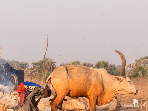 Known for their distinctive body art, the Mundari people are recognized for their skill in managing and caring for their livestock, which holds immense social and economic significance. They have a close connection to the land and rely on their cattle for sustenance and trade. Despite facing challenges due to conflict and displacement, the Mundari tribe continues to uphold their traditions and maintain their unique way of life. For the Mundari tribe, cattle symbolize wealth, prosperity, and an integral part of their cultural identity. Each day, the chief takes on the responsibility of leading the tribe's cattle to fertile grazing lands, ensuring their well-being and survival.